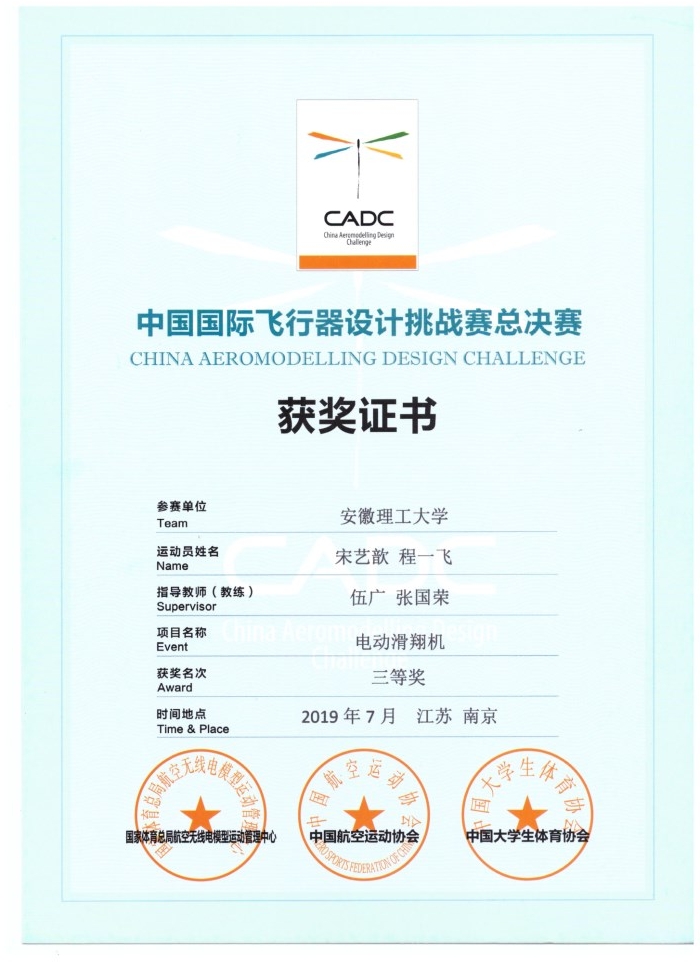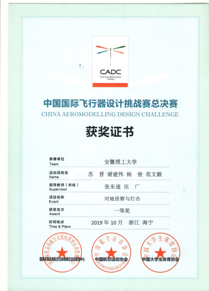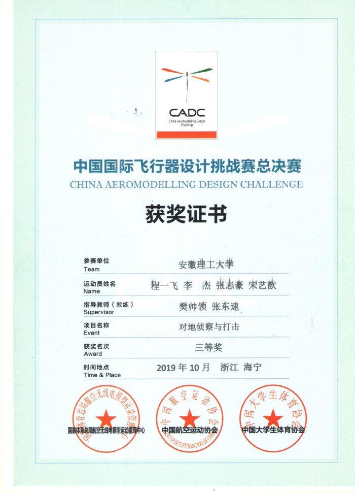 经过前期分站赛的奋力角逐,我校共有四个项目八个机组入围本次总决赛。最终,对地侦察与打击项目的两个机组分别荣获一等奖和三等奖,电动滑翔机项目的两个机组均获得三等奖,所获成绩位居安徽省高校前列,开创了我校在该项赛事中获得一等奖的历史。
