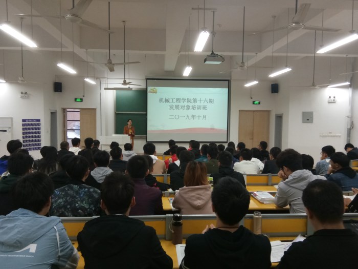 10月26日,机械工程学院在天工203教室举行了第十六期发展对象培训班开班典礼。学院党委副书记、分党校副校长程秀霞出席典礼并讲话。典礼由学院党委秘书宫盼盼主持,98名学员参加。