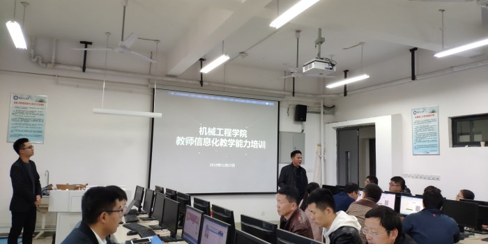 为进一步推动现代信息技术与教育教学的深度融合、创新“新工科”的教学模式与效果,11月15日下午,机械工程学院邀请北京超星尔雅教育科技有限公司项目经理董双瑞和培训师江山,在励学楼B408举办教师信息化教学能力培训会。