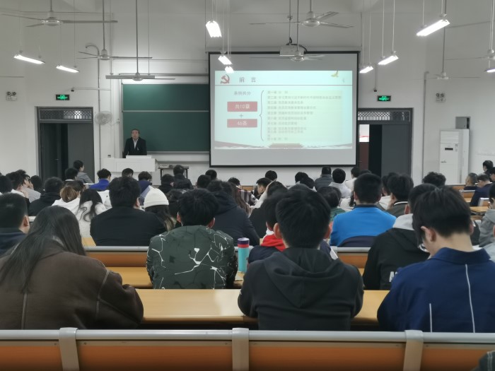 11月20日下午,机械学院党委书记武有水在天工203教室为学院全体党员上党课,对《中国共产党党员教育管理工作条例》(以下简称《条例》)进行解读,学院全体教工、学生党员听取了党课。