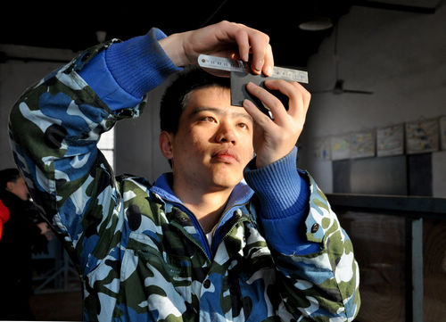 钳工比赛现场 选手认真测量数控车比赛现场 选手编程操作