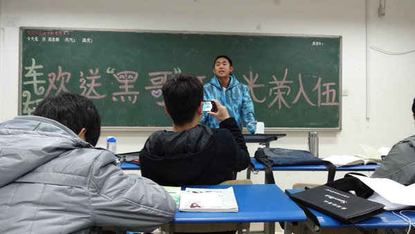 2月12日晚,机械工程学院在北1403教室为汪楠举行欢送会,辅导员、班主任、全体2012级车辆新生参加了欢送会。