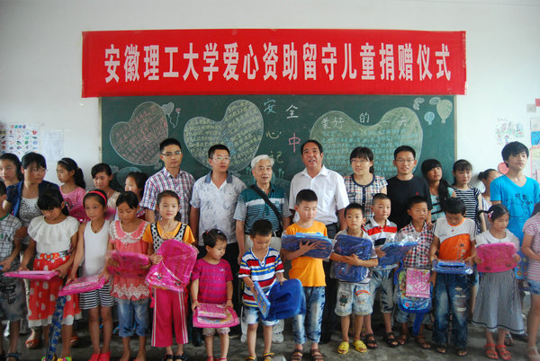 三学院为小岗村留守儿童捐赠了爱心书包和文具,鼓励孩子们好好学习,发扬老一辈人的改革精神和新时代的沈浩精神,将来成为栋梁之才,为建设美好乡村和构筑中国梦贡献力量。三学院还为小岗学校捐赠1-9年级适用的新图书(含科普、文学、文艺、辅导资料等)200册。小岗学校校长张荣俊语重心长的说:“感谢你们能为我们小岗学校捐书,为本村孩子们捐书包和文具,目前我校正处在建设期,需多方面的投入,你们所捐赠的正是我们所需要的。安徽理工大学作为省内知名高校,能来资助我们小岗学校感到非常的感激。”