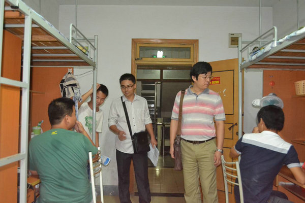 他们首先来到北区学生公寓8号楼和9号楼管理站,向宿管员了解新生的入住情况,然后来到宿舍与新生一一进行交流,了解学生的基本情况,提醒新生注意宿舍用电安全以及人身财物安全, 回答新生提出的问题,希望大家尽快融入大学生活。新生辅导员还对新生入学教育等活动作了安排。