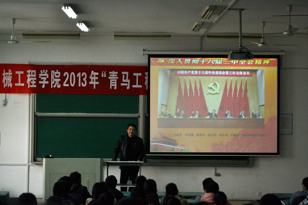 为了帮助大学生骨干学习和掌握党的理论创新成果,提高思想政治素质与工作水平,11月16日,在雄壮的国歌声中,机械工程学院2013年青马工程培训班在北实504隆重开班。学院党委副书记徐育军主持开班典礼。