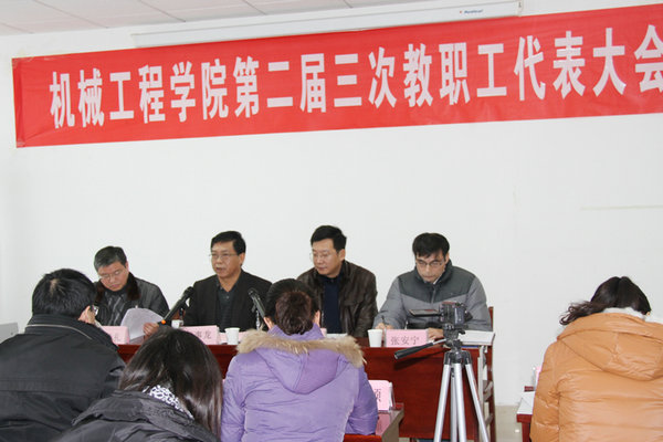 1月16日上午,机械工程学院第二届三次教职工代表大会在实验中心1107报告厅隆重召开。校党委书记颜事龙应邀出席大会并讲话。