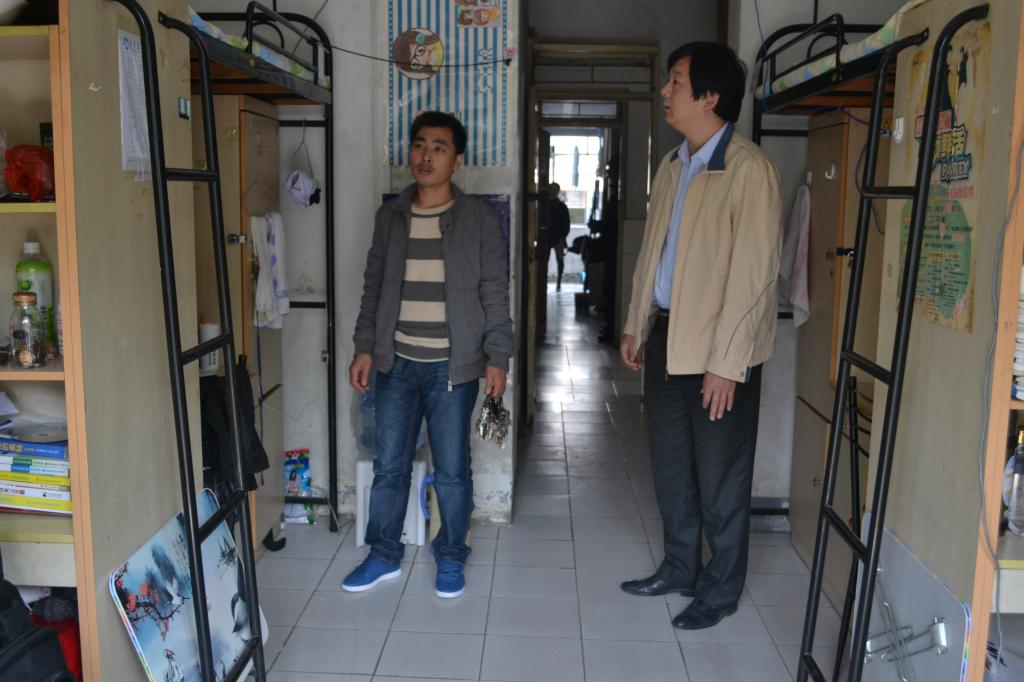 4月30日上午,学院就本部、北区的学生宿舍分别进行了检查。徐育军带领辅导员重点检查了本部3号楼和N楼的用电、卫生、吸烟等情况,深入到每一间宿舍,亲手关掉未关闭的电源,要求学生一定做到人走门锁、关闭电源、保护好贵重物品、注意出行安全等。