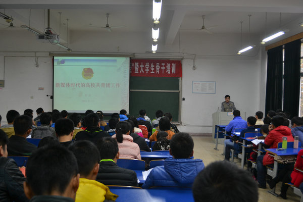 彭晶以《新媒体时代的共青团工作》为题,向全体学员介绍了高校新媒体的发展路径及现状,对90后大学生的“微”生活和“心”变化进行了分析。他重点介绍了目前我校优先试点使用的团中央研发的Myouth校园资讯平台以及我校团组织开通的微博、微信平台,鼓励同学要利用新媒体引领新风尚,传播正能量。