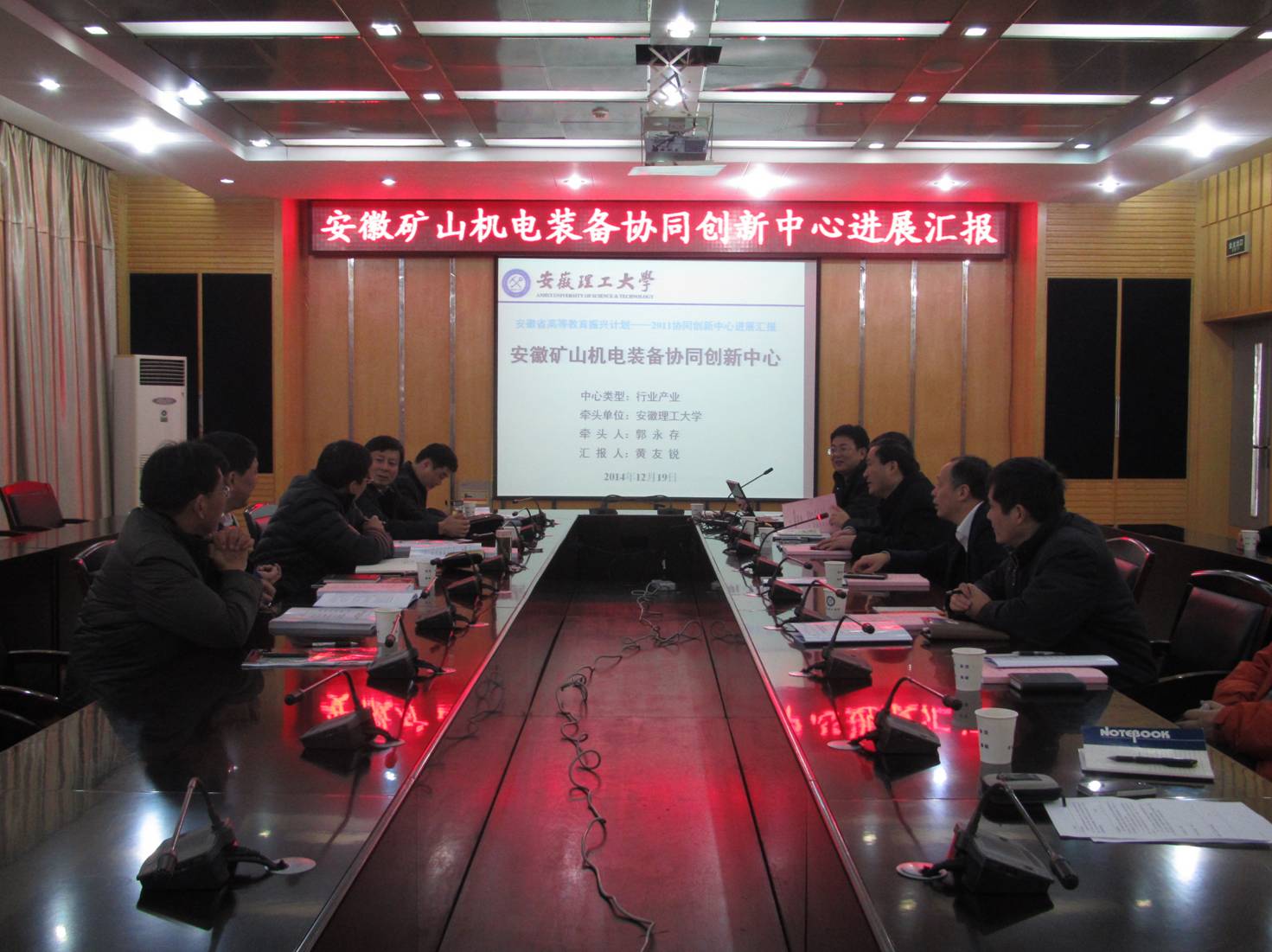 12月19日上午, 安徽矿山机电装备协同创新中心(以下简称“中心”)进展情况专家检查验收会在校本部图书馆北会议室举行。来自合肥工大高科信息技术有限责任公司、机械工业第一设计研究院以及淮南市科技局、协同单位凯盛重工有限公司等专家,对项目进展情况进行了检查验收,校长郭永存出席会议。