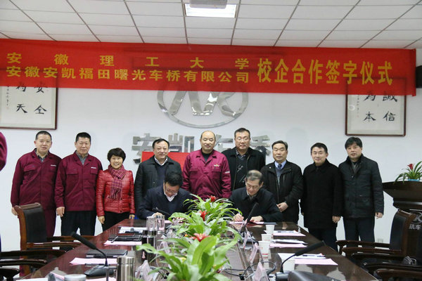 1月15日下午,安徽理工大学、安徽安凯福田曙光车桥有限公司的校企合作协议签字仪式和产学研基地、教学实习基地揭牌仪式在合肥举行。