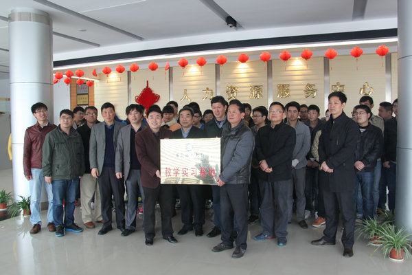张东速介绍了我校大学生实习基地的建设目标和规划要求,并就机械工程学院的师资、教学、科研等基本情况向与会人员进行了介绍。陈玉副县长、黄卫标主任分别介绍了青阳县的经济发展状况和开发区工业企业的基本情况。实习指导教师王成军副教授、机械设计制造及其自动化专业2011级学生张洋凯分别作为指导教师代表和实习学生代表发言。苏嘉银、张东速、张新、和陈玉、陈寅根等共同为教学实习基地揭牌。