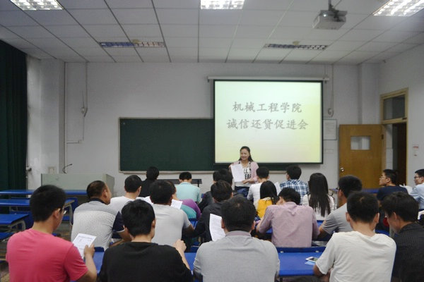 为进一步做好国家助学贷款工作,增强学生诚信还贷意识、责任意识和感恩意识,5月15日,机械工程学院在新附2104教室召开毕业生诚信还贷促进会。学院党委副书记徐育军、毕业班辅导员及贷款毕业生、班级学生代表100余人参加了促进会。