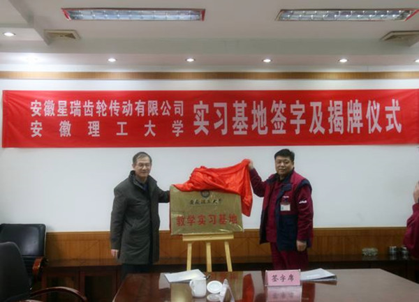 1月20日下午,我校与安徽星瑞齿轮传动有限公司的教学实习基地签字与揭牌仪式在六安市安徽星瑞齿轮传动有限公司举行。副校长王其东、教务处副处长刘群红、机械工程学院院长王传礼、副院长王开松,以及公司总经理陶诚等相关领导参加了揭牌仪式。