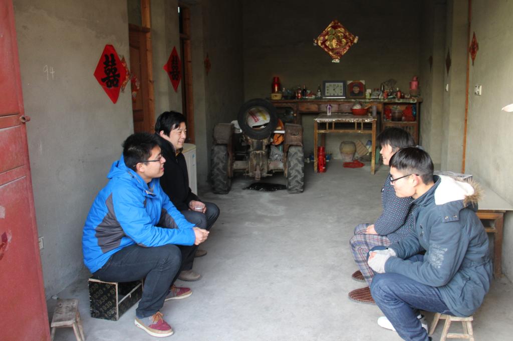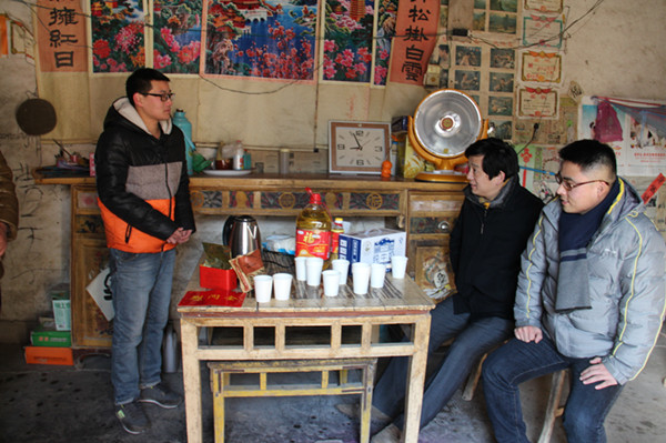徐育军和辅导员在学生家中慰问(摄影:郭莉)