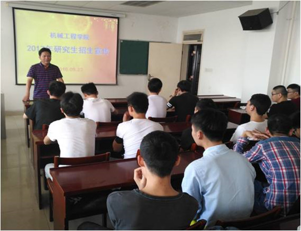 2017年研究生招生考试报名在即,为了提高生源质量、吸引优质生源,机械工程学院在学校的指导下,认真制定宣传方案,更新网页宣传资料,动员学科带头人和专业课教师参与研招宣传,建立毕业校友的外校师资的研招网络,积极赴外校开展研招宣传的同时,于9月23日在实验中心1107报告厅,开展了针对学院考研学生共计70余人的研招宣传工作,会议由学院王开松副院长主讲。