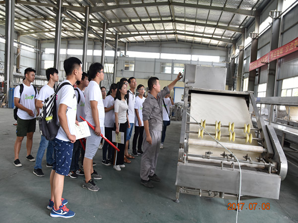社会实践队员们首先来到国家高新技术企业淮南徽旺豆制品设备有限公司,实地参观生产流程,学习了解设备特性,了解企业设备的先进性,加深对所学专业的了解,并挂牌建立大学生就业创业见习基地。
