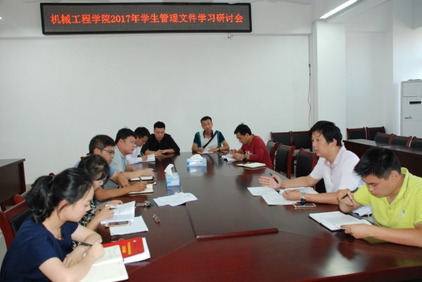 9月15日下午,机械工程学院在励学楼A402召开学生管理文件学习研讨会,全体专兼职辅导员参加了研讨会。研讨会由学院党委副书记徐育军主持。