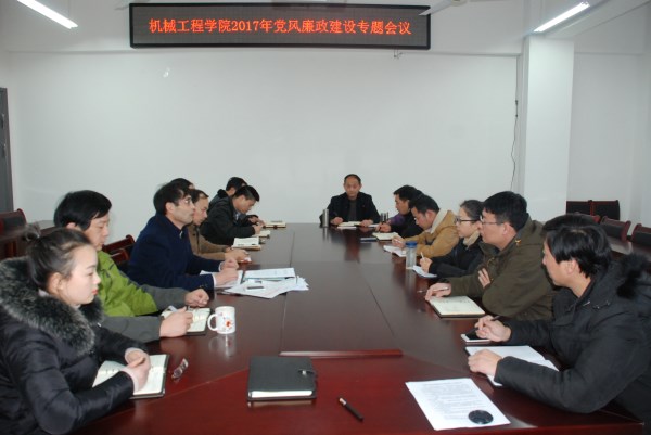 12月20日,机械工程学院在学院A402会议室召开2017年党风廉政建设专题会议,学院党委委员、各党支部书记、科级干部、教研室主任、辅导员参加会议。会议由院党委书记张安宁主持。