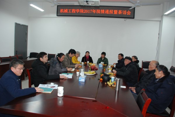 1月22日,机械工程学院在励学楼A402召开党外代表人士、离退休教师代表院情通报暨茶话会,通报学院2017年主要工作,听取了老教师和党外代表人士对学院工作的意见和建议。会议由院党委副书记徐育军主持。