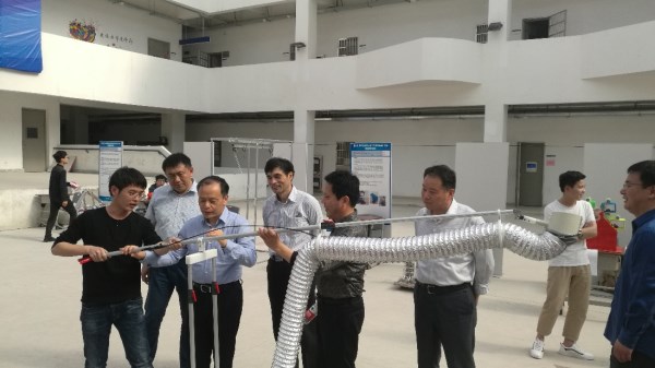 在观摩过程中,每件作品的设计制作者分别演示了各自作品。郭永存一行详细询问了每件作品的功能原理以及创新点,并提出了相应的建议。
