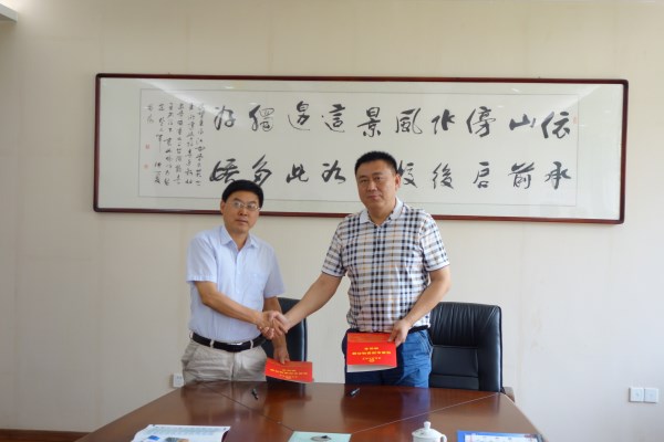 刘启蒙、杨洪涛分别代表学校与两所中学领导签订了《安徽理工大学优质生源基地共建协议书》,并向两个优质生源地首授牌。