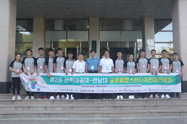 7月11日,由我校机械工程学院张安宁书记、张东速教授、姜阔胜博士带队,师生一行共15人,携带四组比赛作品赴韩国韩南大学(Hannam University)参加第二届中韩机电创新设计交流会,并在比赛中取得佳绩。