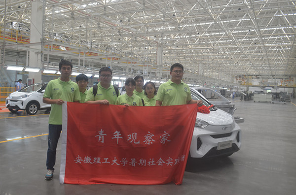 在芜湖市弋江区,实践团成员参观奇瑞新能源汽车技术有限公司的“小蚂蚁”工厂,学习了汽车的整个制造流程,认识到创新环保对于现代化工业的重要性。