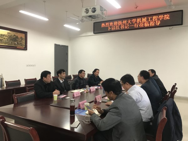 11月8日下午,扬州大学机械工程学院党委书记卜以江、院长龚俊杰、副院长张超及张剑峰教授、张瑞宏教授一行来机械工程学院调研交流。交流座谈会在励学楼A402会议室举行,机械工程学院党委书记张安宁、副院长王成军、副院长伍广、机械设计制造工程系主任张立祥参加了此次座谈会。