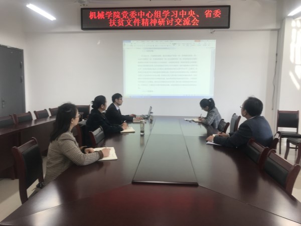 11月9日上午,机械工程学院在励学楼A402召开党委中心组学习研讨交流会,集中学习党中央、国务院和省委、省政府下发的扶贫工作相关文件,研讨会由院党委书记张安宁主持。