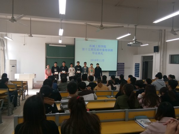 11月13日中午12:30,机械工程学院在明理南314教室举办第十五期发展对象培训班毕业典礼。学院党委副书记、分党校副校长程秀霞出席毕业典礼并为学员颁发毕业证书。