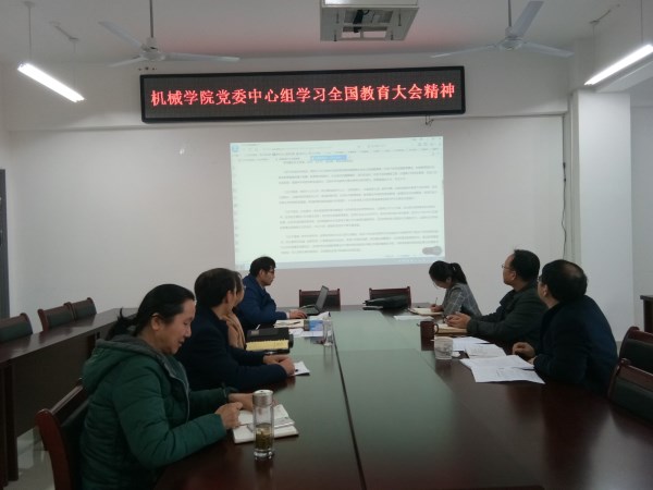 11月26日下午4:00,机械工程学院在励学楼A402召开党委中心组扩大学习会,学习全国教育大会精神,学习会由院党委书记张安宁主持。
