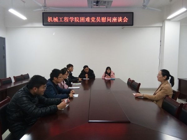 2018年12月6日下午,机械工程学院在励学楼A402会议室,举办困难党员慰问座谈会。党委副书记程秀霞代表学院党委,把温暖和关怀送到了困难党员心中。