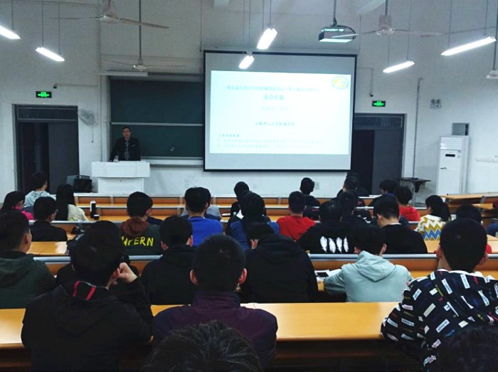为帮助准备参赛同学准确把握第九届全国大学生机械创新设计大赛主题,4月11日晚,机械工程学院主办的第九届全国大学生机械创新设计大赛主题解析会在天工302教室成功举行。解析会邀请阮学云教授担任主讲,来自机械工程学院、电气与信息工程学院、材料科学与工程学院等学院的近200位同学到场聆听。