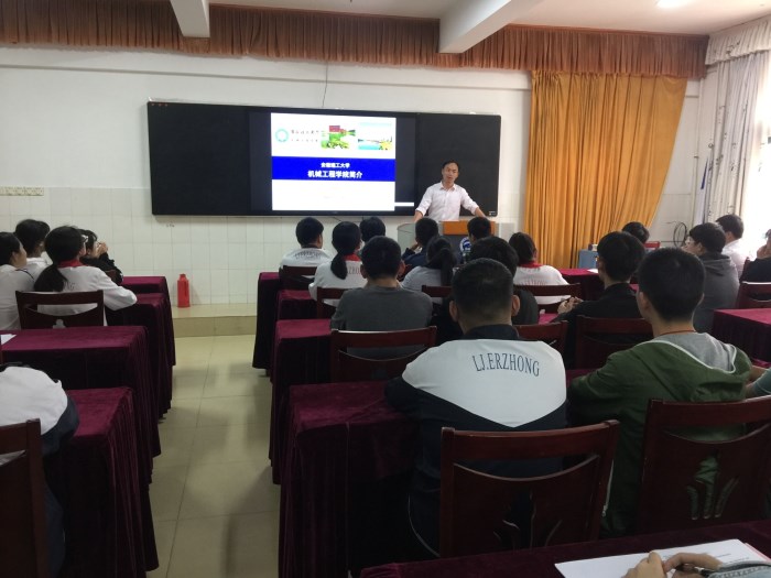 王开松一行与庐江中学、庐江二中等学校领导班子及老师们进行了座谈。随后,分别在庐江中学和庐江二中召开招生宣讲会,王开松高度赞扬了庐中学子积极进取、朝气蓬勃的良好精神面貌,并就志愿填报方面给予同学们行之有效的指导和帮助,勉励同学们不忘初心、砥砺前行、决胜高考,真诚欢迎同学们填报安徽理工大学。庐江中学1998届毕业生、机械学院机电系主任马天兵教授介绍了学校的办学历史、招生就业、教学科研、学科建设情况以及针对优质生源地招生的相关优惠政策,详细介绍了机械学院建设发展情况、学院的特色专业以及学生所取得的各项成果,并就中外合作办学的机械电子工程新专业做了重点推介。车辆16-2班吴磊、机设15-3班刘星、车辆17-2班李伟作为两所中学的毕业生分享了各自在安徽理工大学的成长与收获,并介绍了学校优秀的办学条件、优美的校园环境以及学校的奖助体系等情况。