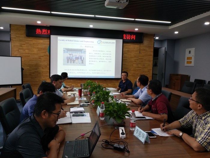 为加强学院教师对机器人工程专业课程与实验室建设的理解,进一步建设好机器人工程新专业,7月5日,机械工程学院副院长杨洪涛,教授张军、李宪华,博士田兴一行四人赴东北大学机器人科学与工程学院进行专业调研。