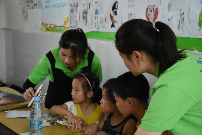 在教室里,实践团队成员结合拼接好的飞机和智能小车实物模型,给小朋友们讲解机械模型相关知识。各位小朋友认真听讲,积极思考,踊跃回答。随后,志愿者和小朋友们一起进行了飞机拼接的游戏。在志愿者的指导和帮助下,小朋友们兴致勃勃、专心致志地拼装着小飞机,每一组的孩子们都成功地完成了飞机模型的拼接任务。