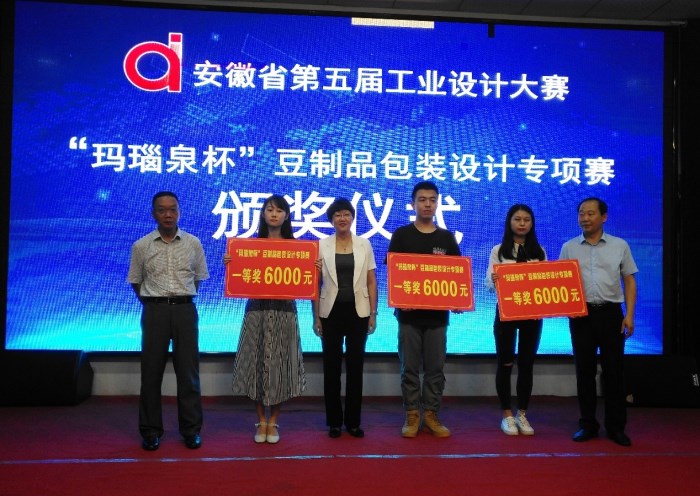 6月20日,安徽省第五届工业设计大赛“玛瑙泉杯”豆制品包装设计专项赛颁奖仪式在安徽八公山豆制品有限公司圆满举行。市经信局领导、安徽理工大学、淮南师范学院、安徽职业技术学院等多所高校的指导教师、设计师等获奖代表共100余人参加本次活动。