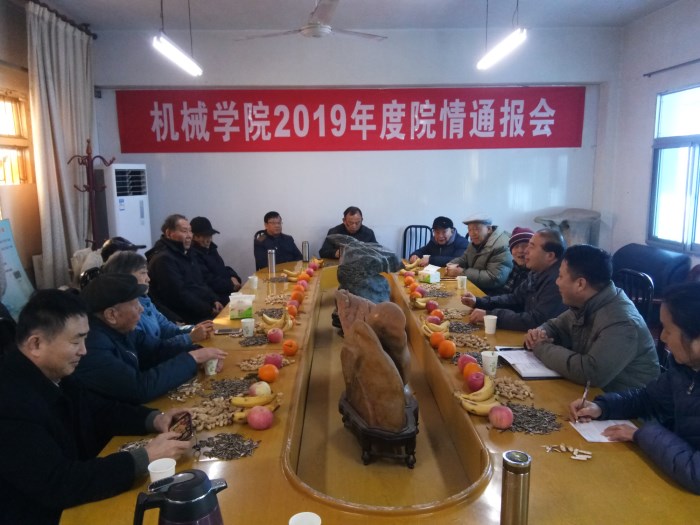 12月31日上午,机械学院在校本部家属区教职工活动中心召开2019年度院情通报会暨关工委工作会议。学院党政领导班子成员和退休老教师代表、部分关工委成员参加会议,会议由院党委书记武有水主持。