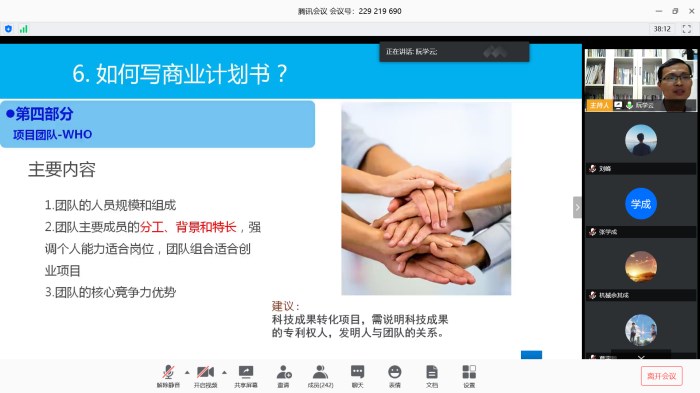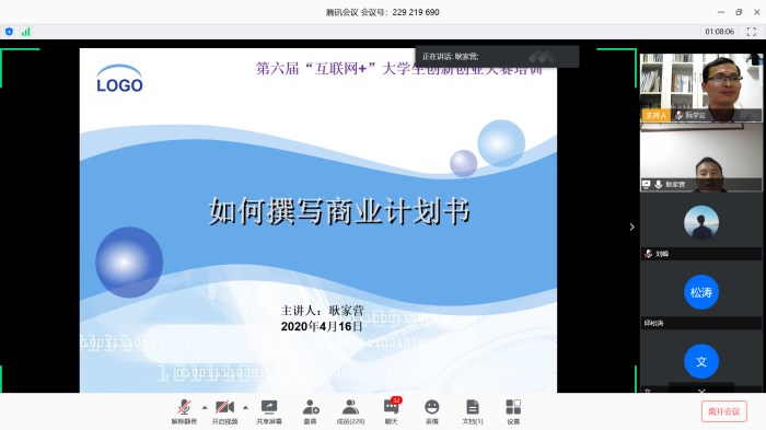 4月16日晚,机械学院利用腾讯会议平台召开互联网+大学生创新创业大赛视频培训会,会议由机械学院副院长杨洪涛主持,机械学院阮学云和经管学院耿家营两位老师应邀担任主讲,全院各年级、各专业本科生、研究生和博士生一共240余人线上参会。