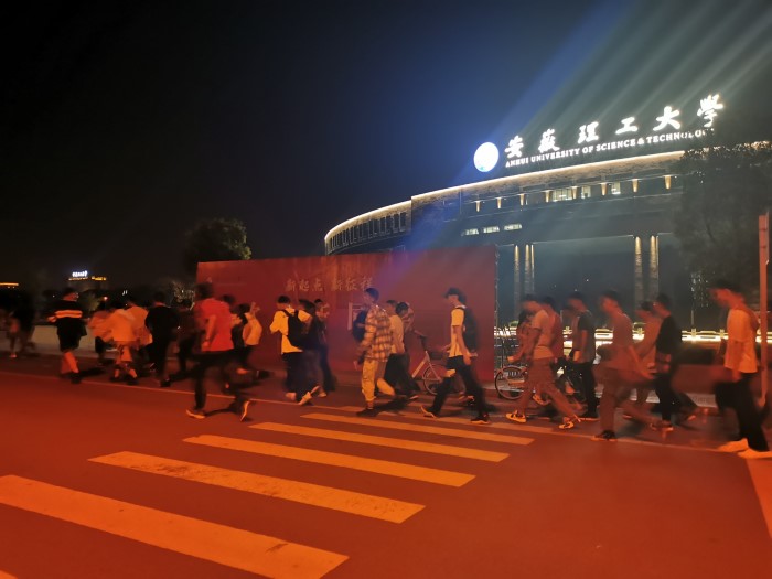 9月20日晚9点,机械工程学院大一新生有序从自习室走出,22个班级786名同学整齐地在天工南教学楼前列队,伴着辅导员的一声哨响,学院新生夜跑开跑。
