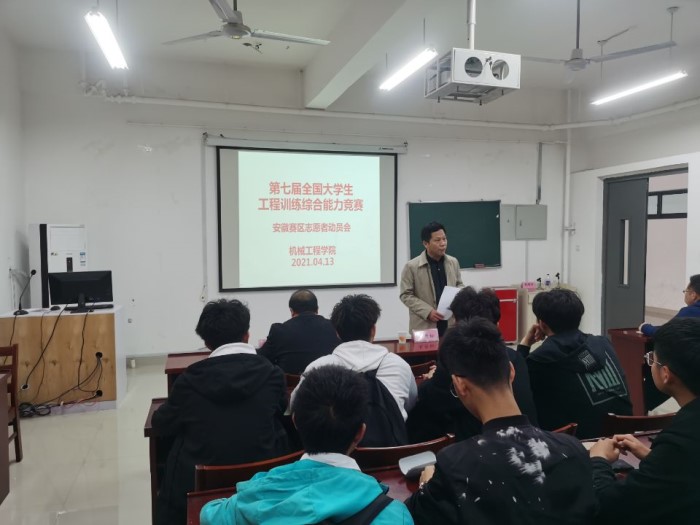 4月13日,机械工程学院在励学楼B403召开了第七届安徽省工程实训综合能力竞赛动员会,学院主要领导、各赛道技术负责人和全体志愿者参加了本次会议。