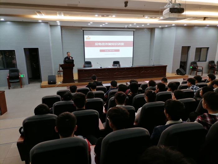 为认真落实学校反电信网络类诈骗宣传教育专项行动要求,切实增强学生防范电信网络类诈骗意识,4月28日晚,机械工程学院在图书馆报告厅举办了反电信诈骗知识讲座。淮南市公安局山南公安分局王江平老师应邀担任主讲。学院党委副书记、辅导员及学生代表、学生干部近300人聆听了讲座。
