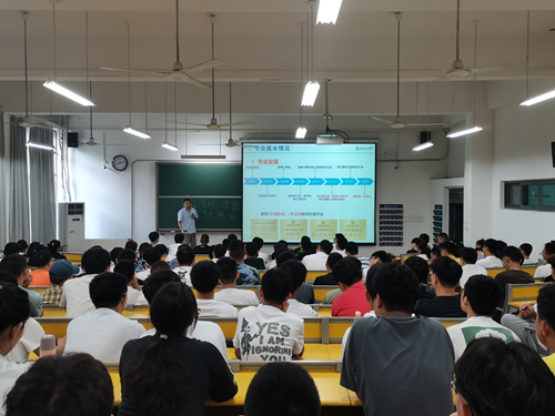 老师们结合专业特色、时代趋势、学生特点,以点带面,深入浅出,将一片美好蓝图绘制在新生面前。机械设计制造及其自动化专业的张茂杰课后拉住辅导员说:“老师们讲得太好了,我现在热血沸腾,我一定要成为一名优秀的工程师!”有的课堂还邀请了同学上台自我介绍,在专业认知的同时,更增强了班级的熟悉度。