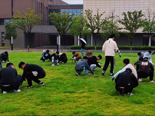 阴雨绵绵,大风呼啸,但丝毫阻挡不了新生们的劳动热情。近百人的清洁队伍在老师、班委的组织下,分成若干小队,明确任务,认领工具。负责除草的同学半蹲在地上,仔细辨别每一根杂草;负责垃圾处理的同学不嫌脏乱,不放过一片纸屑。