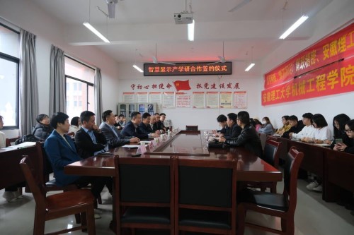 王开松对4家企业来院交流表示热烈欢迎,简要介绍了学院的办学历史、专业设置、学科发展、实验室建设和人才培养等情况。陈乐作为4家企业代表介绍了新型显示产业园的建设情况,提出产业园的技术需求,明确了双方产学研合作的主要方向和具体内容。淮南市高新区管委会副主任翟明希望双方以此次合作为契机,加深了解,探索出一种长期稳定的合作模式,为新型显示产业园建设提供技术支持,促进山南新区的经济发展。