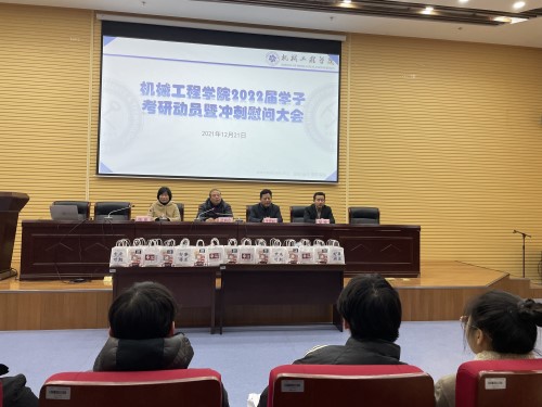 12月21日是敲响年关的冬至,也是考研学子冲刺的最后几日。为进一步增强学院考研学子的备考信心,传递温暖和力量,鼓舞考研士气,机械工程学院在国家重点实验室报告厅召开2022届学子考研动员暨冲刺慰问会。院党政负责同志、毕业班辅导员、部分报名2022年研究生考试的学生近300人参加会议。