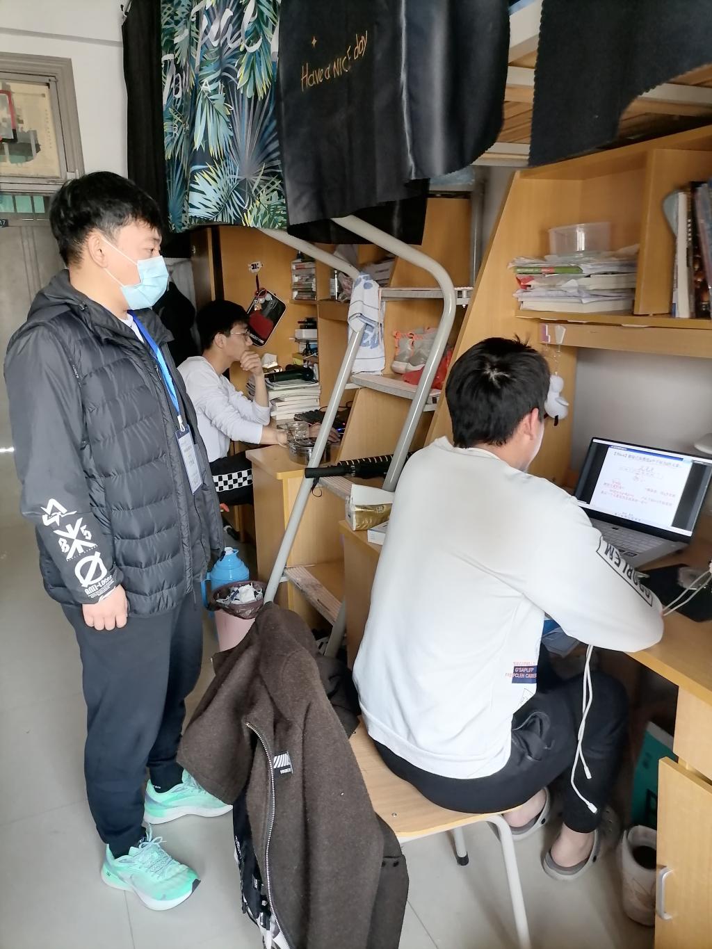 (学生党员在宿舍督查上网课)