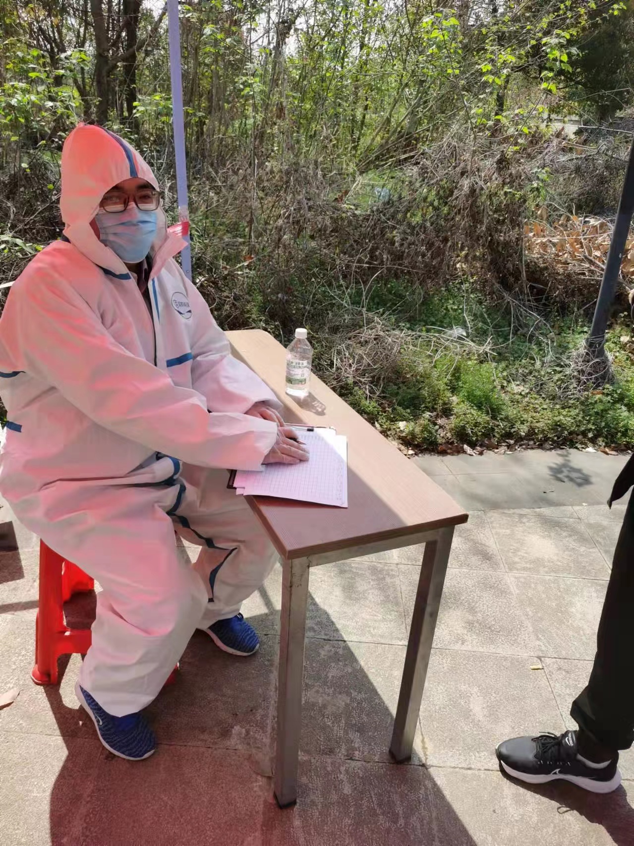 办公室、实验中心党支部党员许军老师家住泉山湖社区,社区内有近3000户住户,面对来势汹汹的疫情防控任务和社区人力严重不足的情况,许军主动到社区报到,积极投入疫情防控工作,协助社区人员做核酸登记、信息搜集整理等工作。当许军老师穿着密不透风的防护服完成一天的志愿服务后,深有感触:作为普通的一名教师,我们无法像医护人员一样冲在抗疫第一线,我们能够做的,就是力所能及地出一份力,配合做好疫情防控工作。