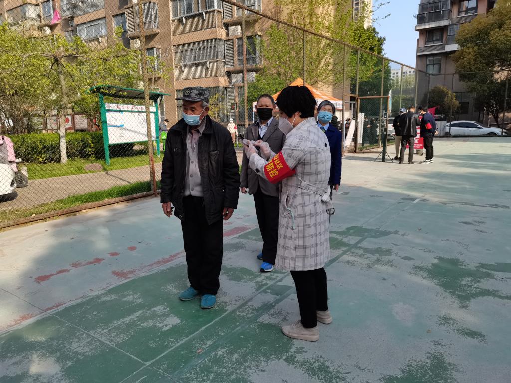 (许军老师在社区进行核酸登记)