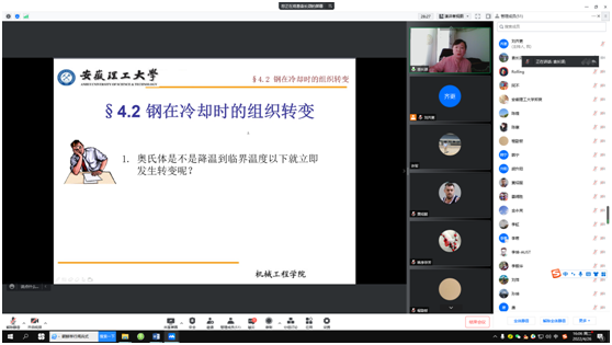 四位老师结合自己的课程特点,通过腾讯会议平台,开展了包括屏幕共享、白板批注、线上互动讨论等多形式多环节的线上示范教学。教学过程流畅,授课思路清晰,重、难点突出,富有激情和感染力。专业知识与抗疫形势自然连接,融思政元素与专业课程,起到很好教书育人效果。参与教师针对线上教学设计、课堂组织、过程管理及教学成效等方面的经验和心得,以及线上教学理念、特色与创新做法等,积极开展交流和深入讨论。